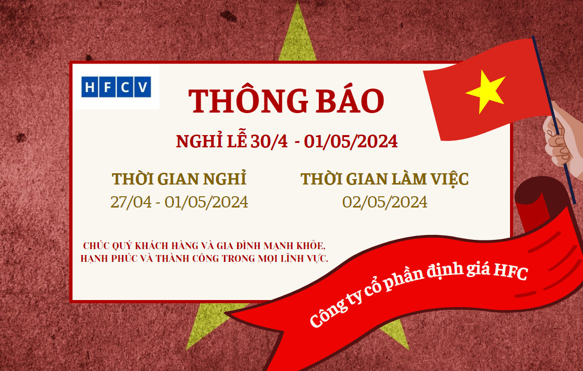 Công ty Cổ phần Định giá HFC xin thông báo lịch nghỉ lễ 30/04 và 1/5