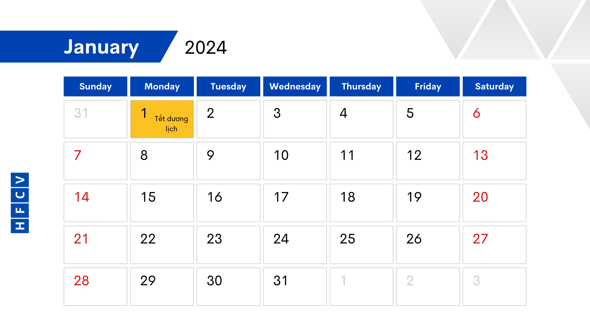 Công ty Cổ phần Định giá HFC xin thông báo lịch nghỉ Tết dương lịch như sau: